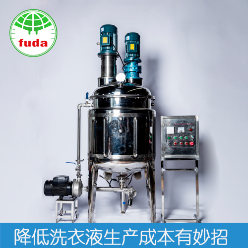 洗衣液設(shè)備結(jié)構(gòu)決定洗衣液品質(zhì):傳統(tǒng)工藝的洗潔精生產(chǎn)設(shè)備,就是安裝一個(gè)攪拌機(jī)裝置對(duì)溶劑攪拌,因攪拌不均勻產(chǎn)品乳化不夠好,導(dǎo)致溶劑上層濃度太小,故只能投入更多原料,即增加了成本。因乳化不夠好,一段時(shí)間后產(chǎn)品容易分層,容易變質(zhì)。富達(dá)日化采用的新工藝,在機(jī)器上部安裝剪切機(jī)和攪拌機(jī),兩臺(tái)裝置高速旋轉(zhuǎn)(3000轉(zhuǎn)/分,生產(chǎn)過程中噪音低于50分貝),產(chǎn)品能夠充分的攪拌和乳化,達(dá)到濃度統(tǒng)一,產(chǎn)品不容易分層,節(jié)省了成本的同時(shí)也保證了質(zhì)量。下部安裝的是乳化裝置,它能把難以溶解的溶劑循環(huán)的徹底乳化,使保質(zhì)期延長(zhǎng)(比常規(guī)的保質(zhì)期要延長(zhǎng)一年)。
