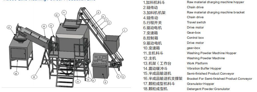 粉體自動加料機(jī),主機(jī),主機(jī)緩沖斗,主機(jī)支架,顆粒機(jī)支架,自動控制柜A,自動控制柜B,半成品輸送機(jī),氣動自動排料機(jī),成品輸料塔,KL雙輥顆粒成型機(jī),振動儲料塔,自動控制閥,工作平臺,半成品老化塔支架,成品輸料機(jī)支架,振動儲料塔支架。以下是生產(chǎn)線詳細(xì)示意圖: