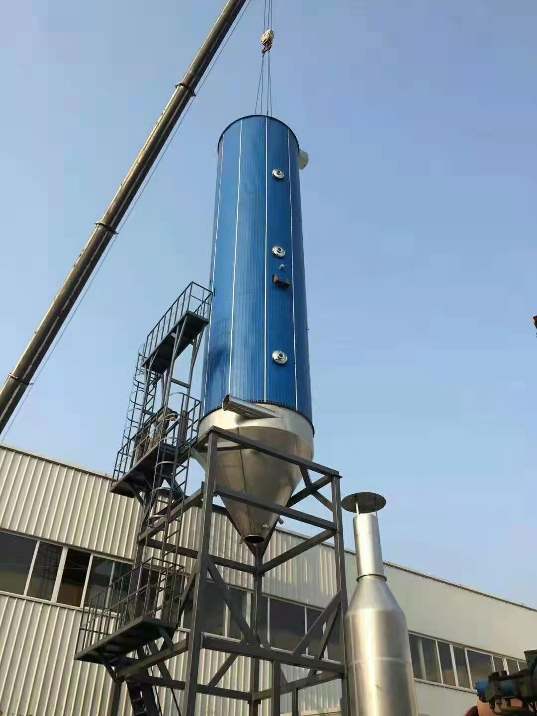 備注:噴霧干燥法不同產(chǎn)量的高塔設(shè)備高度在24-40米,塔直徑2.5-10米。